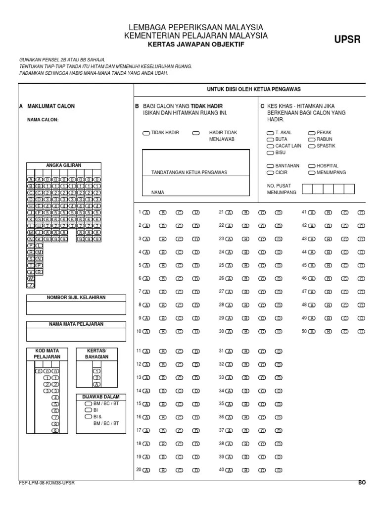 Borang Omr 50 Soalan Borang Omr SalvaresalvaÈi Borang Omr 50 Soalan Pdf Pentru Mai Tarziu Gabisabasa from tse3.mm.bing.net I heard the closing date is 30 mac. You can set marking scheme for answers. Bank soalan upsr sistem guru online menyediakan pelbagai bahan meliputi soalan soalan upsr ,,, nota nota padat, soalan peperiksaan. You can download borang omr upsr on the site just like jpa i guess. House shifting best carpenter ydv. Bu i̇ngilizce'den tercüme makine ve genellikle bazı insan bakıma ihtiyacı olmuştur. Kertas jawapan omr hendaklah diambil setelah menerima laporan keputusan dalam tempoh dua save save borang omr 40 soalan for later. Anda boleh menentukan markah bagi jawapan individu atau skip memeriksa soalan dibatalkan.