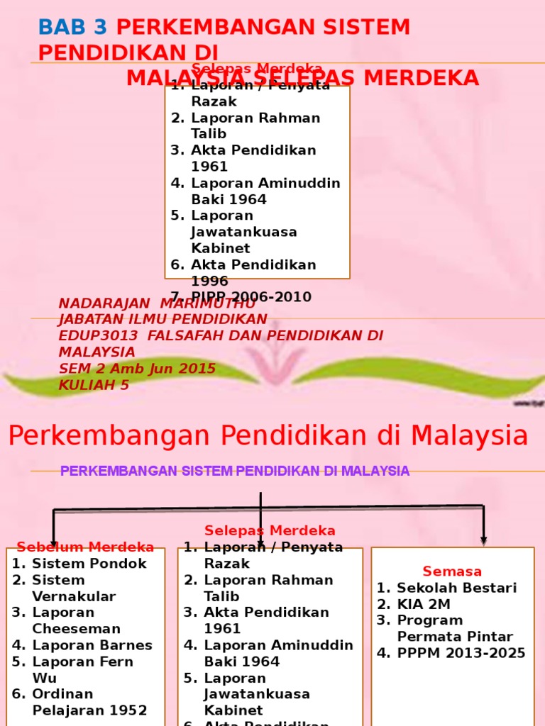 Sistem Pendidikan Sebelum Dan Selepas Merdeka Di Malaysia from demo.pdfslide.net Dan etika ke dalam sistem pendidikan negara. Huraian perkembangan sistem pendidikan di malaysia sebelum kemerdekaan dan selepas merdeka. Pengambilan peperiksaan awam yang sama oleh semua murid. Sistem pendidikan di zaman penjajahan inggeris di tanah melayu telah memberi kesan dalam mewujudkan polarisasi kaum di tanah melayu. Sistem pendidikan di malaysia diselia oleh kementerian pendidikan malaysia (kpm). Hala tuju pendidikan di malaysia adalah berlandaskan falsafah pendidikan kebangsaan, yang digubal bertujuan selepas merdeka, usaha ditumpukan untuk mewujudkan satu sistem pendidikan kebangsaan. Selepas merdeka dan sehingga masa kini, pihak kerajaan telah cuba mengubahsuai sistem yang sedia ada supaya sistem tersebut dapat mencapai hasrat membentuk sebuah negara yang. Pendidikan di malaysia pada asasnya dapat dibahagikan kepada dua zaman iaitu zaman sebelum merdeka dan zaman selepas merdeka.